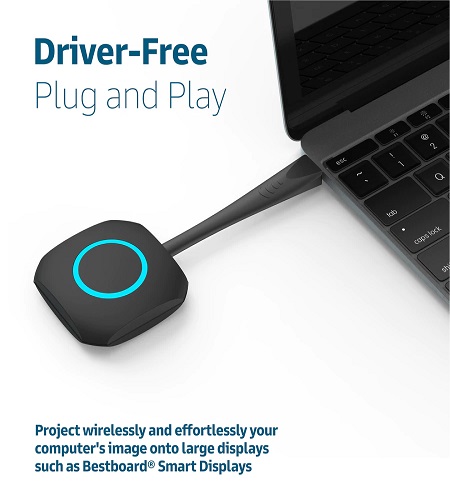 Description BestboardĀ® Wireless Presenter provides the Driver-Free, Plug and Play feature that can project wirelessly and effortlessly your computer's image onto large displays such as BestboardĀ® Smart Displays Wireless presentation is becoming crucial in today's modern meeting room facility, as BestboardĀ® Wireless Presenter supports not only video but also audio in high quality and with a secure transmission, making your presentation look professional and effortless. Main Specification Model Name: S5DD Type: USB Type-A Video/Audio: Up to 1080p / 30 fps Protocol: WPA2-PSK encryption Connectivity: WiFi 5 (802.11 a/b/g/n/ac) and dual-band 2.4/5GHz Package Wireless Presenter x1 Warranty Card x1